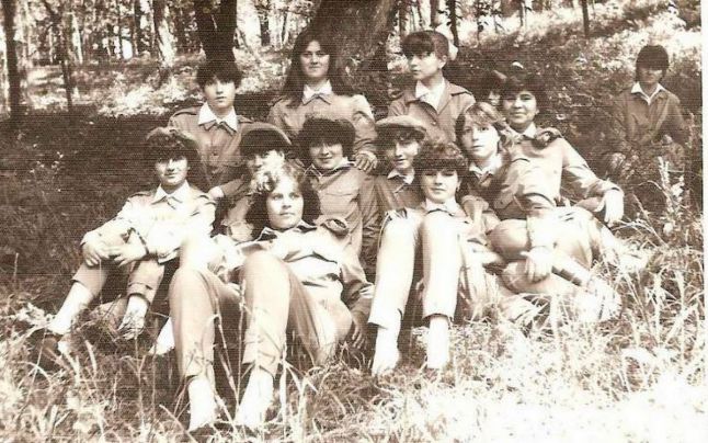 Imagini de la o defilare a trupelor premilitare de fete, în 1985, Craiova. Foto Daniela Mirela Ionescu Jonson. Facebook