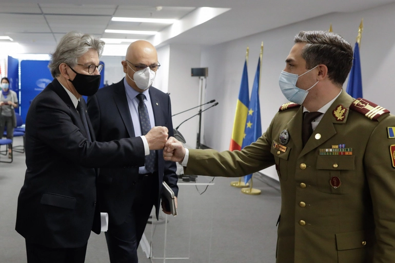 Valeriu Gheorghiță a susținut, joi, o conferință de presă alături de Thierry Breton, comisarul european pentru Piaţă Internă.