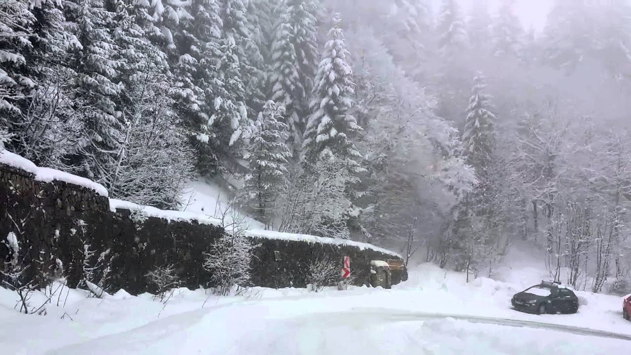 Drumul către cota 1400, închis din cauza zăpezii și stratului de gheață