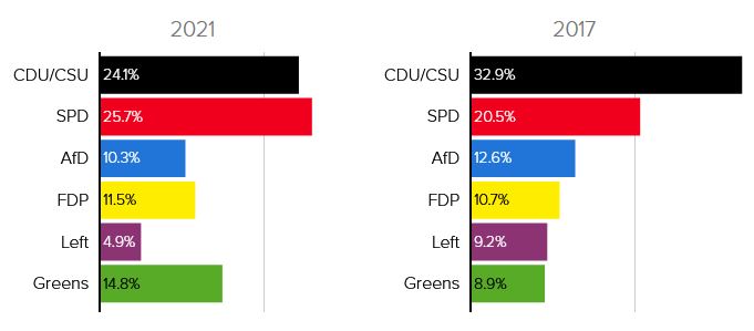 Alianța CDU-CSU a pierdut 12 puncte procentuale în rândul femeilor comparativ cu alegerile din 2017. În rândul bărbaților procentul a scăzut cu 6%.