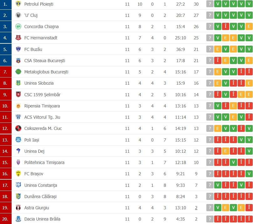 Liga 2: Concordia Chiajna vs FC Brașov 2-1 / Cum arată clasamentul după 11 etape