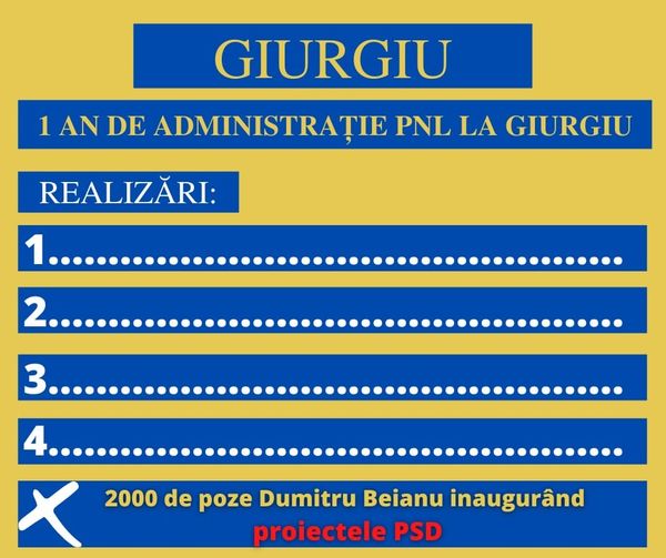 Dacă dumneavoastră ştiţi ce REALIZĂRI au PNL-iştii pentru GIURGIU, până acum, vă invit să le scrieţi mai jos!