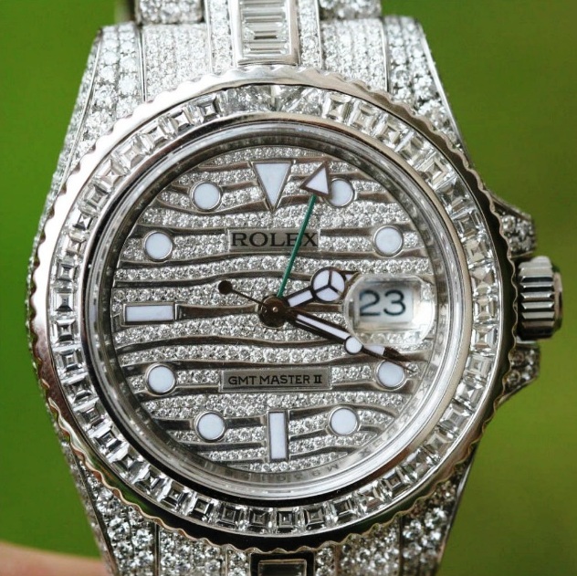 Ceasul este în valoare de 371.000 de lire sterline și nu este de mirare, deoarece este făcut din aur de 18k și ornat cu alte 30 de carate de diamante albe, inclusiv pe brățară.