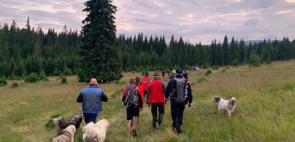 O armată de oameni caută un cioban care a fugit din calea unui urs după ce a văzut cum fiara îi sfâşie prietenul