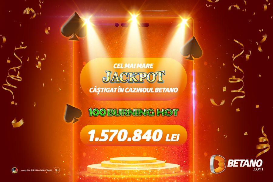 O secundă, un spin și un câștig de peste 300.000€ au reprezentat rețeta succesului! Slotul norocos care l-a premiat cu o viață nouă este 100 Burning Hot, iar pariul câștigător a fost pe o miză de numai 5 lei. Povestea devine și mai interesantă atunci când aflăm că fericitul câștigător este utilizator Betano de mai puțin de o lună.