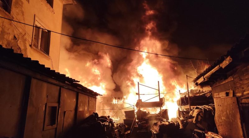 Au ars elemente de caroserie, motoare auto, textile, circa două tone de materiale lemnoase și o ladă frigorifică. Incendiul a afectat alți patru proprietari.
