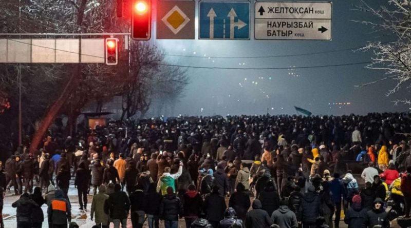 Aproape 5.000 de persoane au fost dispersate de poliţie cu grenade asurzitoare şi lacrimogene la Almatî în noaptea de marţi spre miercuri, potrivit corespondentului AFP la faţa locului. „Guvernul să demisioneze!“ sau „Bătrânul, afară!“, au scandat manifestanţii, făcând referire la fostul preşedinte Nursultan Nazarbaiev (81 de ani).