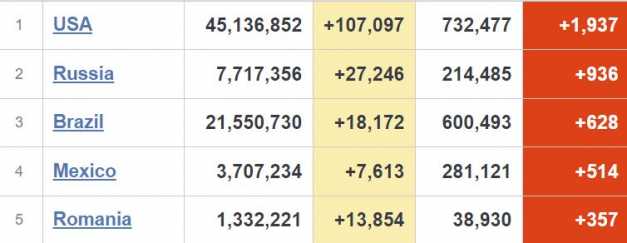 România e precedată în topul deceselor de Mexic (514 decese), Brazilia (628) , Rusia (936) şi SUA (1937).