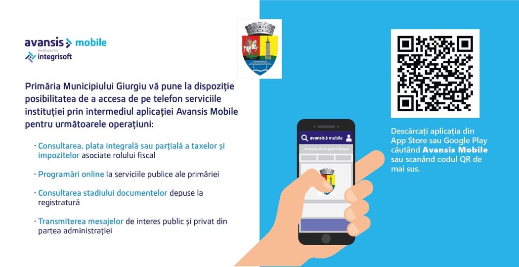 Primăria Municipiului Giurgiu pune la dispoziția contribuabililor din Muncipiului Giurgiu, aplicația Avansis Mobile. Aplicația rulează atât pe telefoanele cu sistem de operare cu Android, cât și pe cele cu iOS și este menită să simplifice accesul cetățenilor din Giurgiu la informațiile lor fiscale.