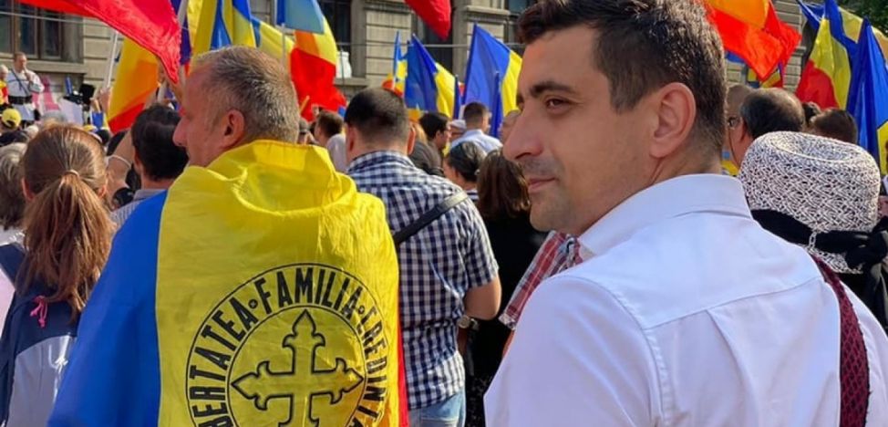 „Suntem alături de românii care nu vor ca vaccinarea să fie obligatorie. Atenţie Dan Barna!”, a scris George Simion pe pagina sa de Facebook, alături de o fotografie cu el la protest.