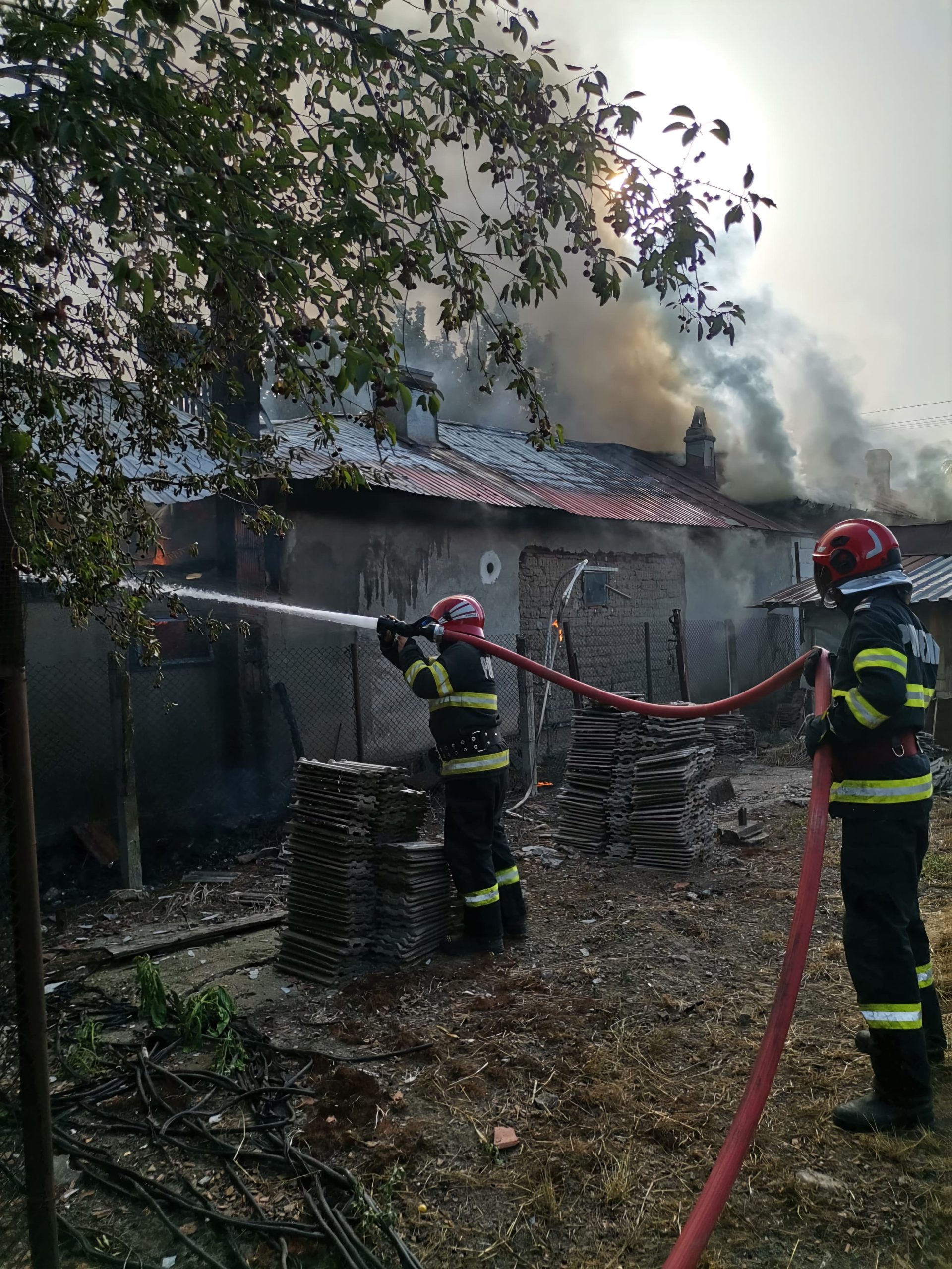 Echipajele au constatat faptul că incendiul se manifesta, atât la nivelul acoperișului, cât și interiorul anexelor și în patru dintre camere.