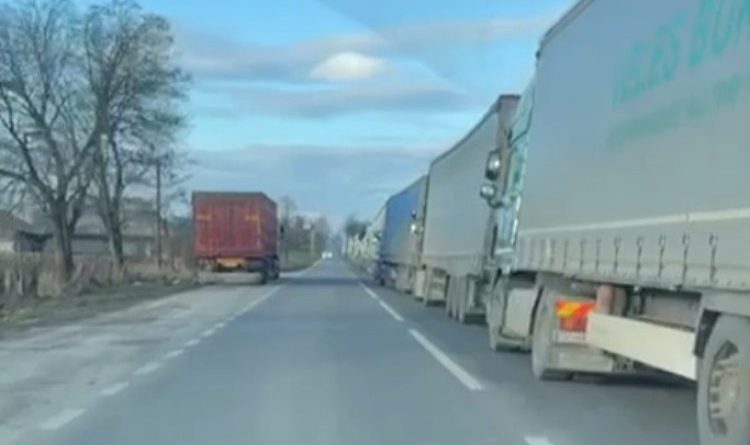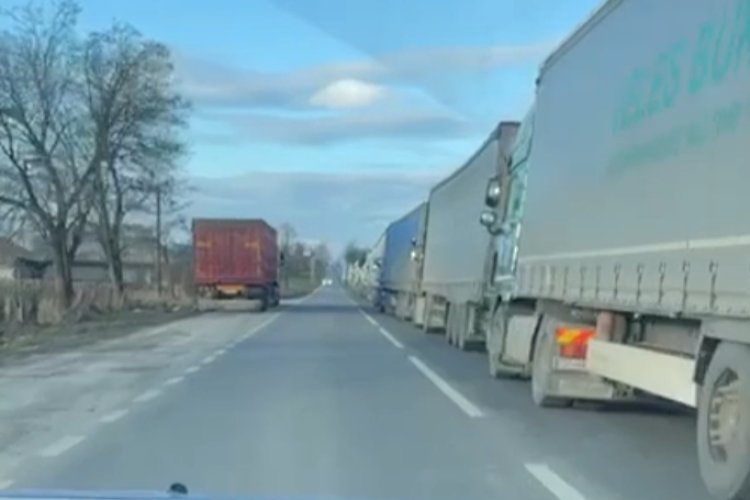 VIDEO: Coada de autocamioane care așteptă să intre în Ucraina, prin Punctul de Trecere a Frontierei Siret, Suceava, se întinde pe 20 de kilometri